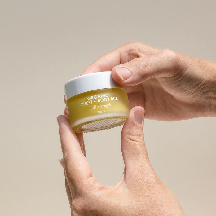Rub into chest, back, throat and feet for respiratory support and to aid a restful nights sleep, or apply directly to affected area to soothe sore muscles and growing pains. For aid during cols, coughs, sniffles to the flu. Suitable from 1 year old. Ingredients: Calendula and Chamomile, infused extra virgin olive oil, Beeswax, Sunflower seed oil, Cocoa seed Butter, Shae Butter, Evening primrose oil, Tocopherol, Naiouli essential oil, Eucalyptus radiata essential oil, Peppermint essential oil, rosemary essential oil, wild orange essential oil, lavender essential oil