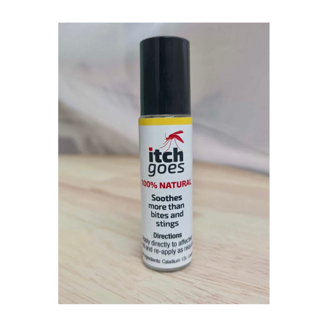 Itch goes provides fast relief from bites, stings and more. This homeopathic product is simply rolled on to the affected area.